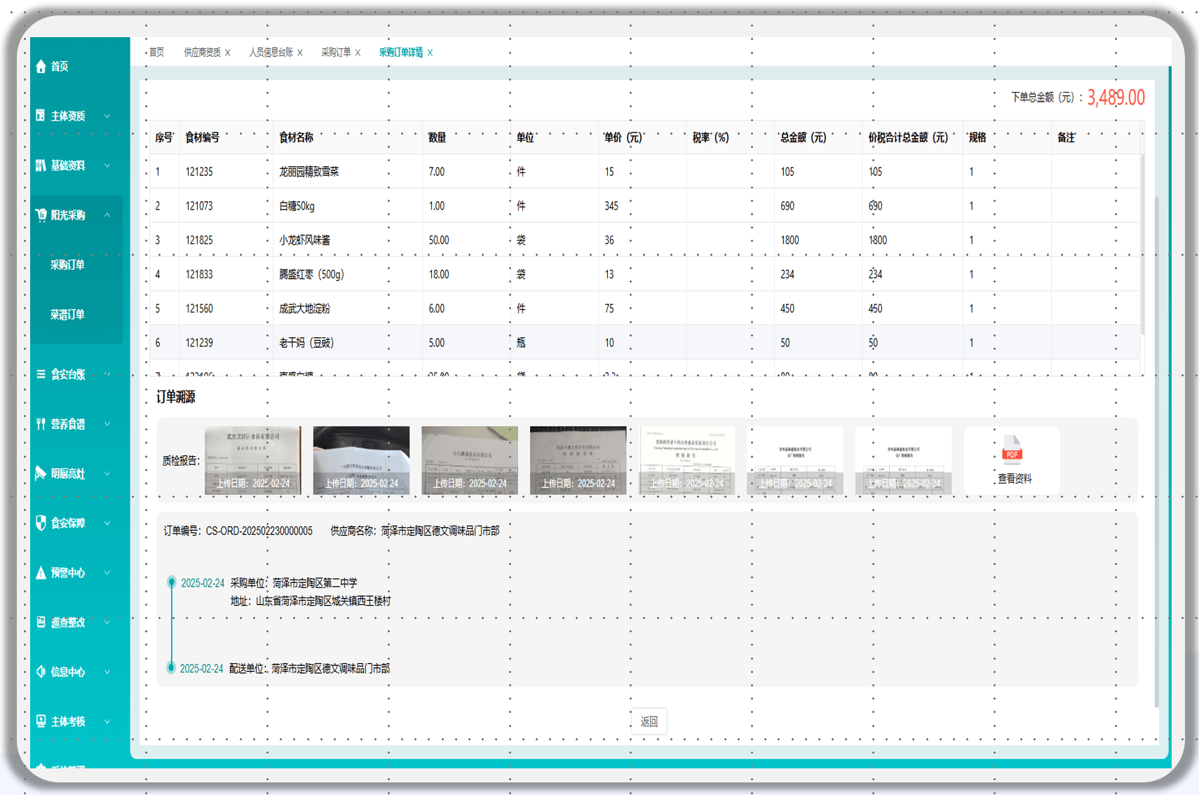 03、守护知情:平台实现了学校、供应商、监管部分的三方共治。资金流向、完全打破“瞒报”的温床。