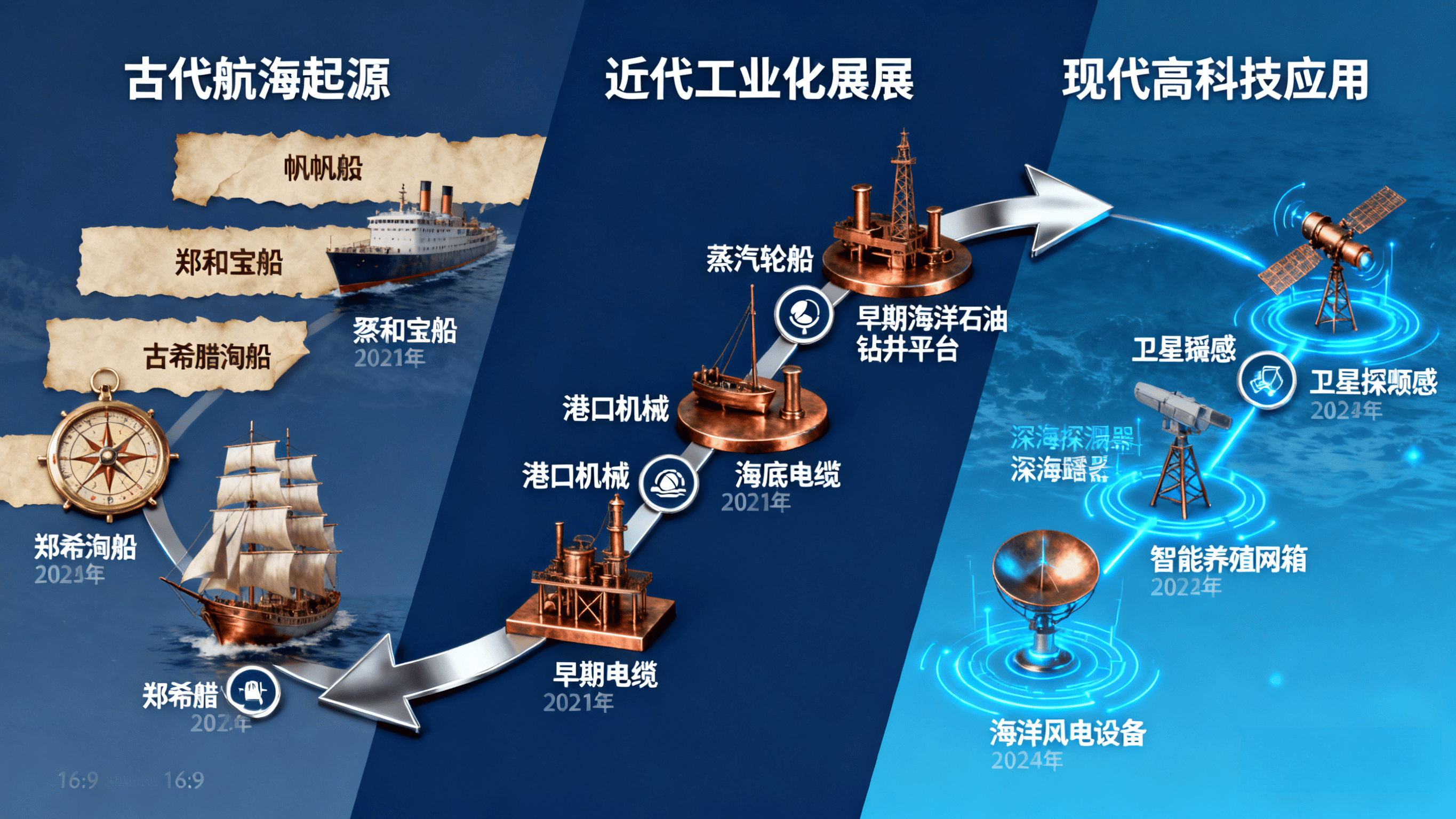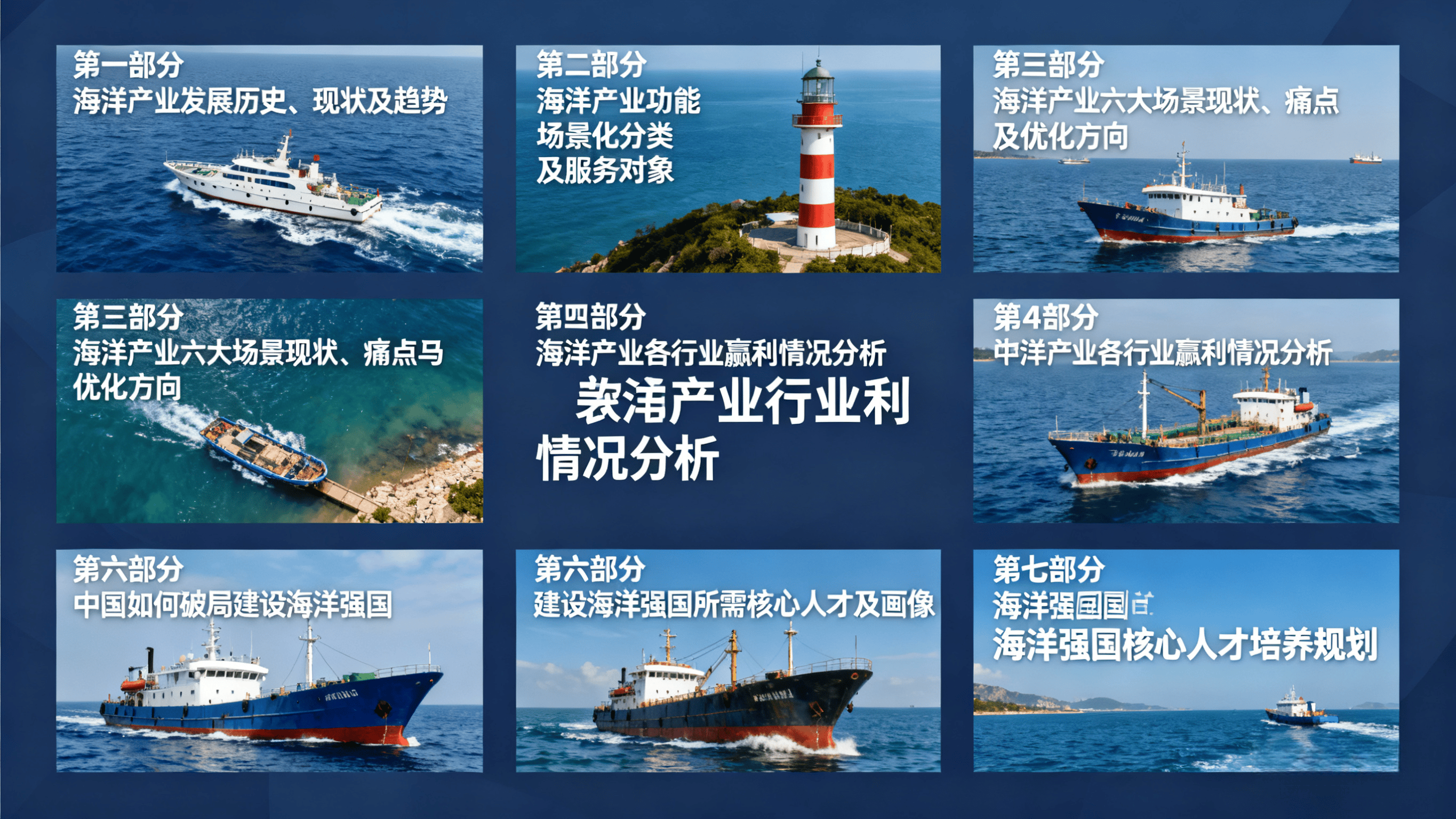 把握海洋财产计谋机缘,需先厘清财产成长脉络、当前款式,判断财产成熟度取市场容量,进而精准预判成长趋向,为机缘挖掘奠基根本。1、海洋渔业:以近海捕捞为从,养殖手艺粗放,2010 年全国海洋捕捞产量约 1249 万吨,占海洋水产物总量的 45%,但过度捕捞导致近海渔业资本阑珊;2、海洋油气:依赖保守开采手艺,开辟范畴集中正在浅海区域(水深<200 米),2010 年海洋油气产量占全国油气总产量的 18%,对外依存度超 50%;3、口岸取航运:以货色拆卸、仓储为从,智能化程度低,2010 年全国沿海口岸货色吞吐量达 64。1 亿吨,但集拆箱铁水联运比例不脚 2%。1、保守财产升级:海洋渔业向 “深近海养殖” 转型,2018 年深近海养殖产量占比提拔至 12%,山东、福建推出 “海洋牧场” 模式;海洋船舶工业向 “高附加值船舶” 冲破,LNG 船、海洋工程船舶国产化率从 30% 提拔至 55%;2、新兴财产萌芽:海洋风电、海洋生物医药、海水操纵等范畴初步成长,2018 年全国海洋风电拆机容量达 444 万千瓦,海洋生物医药财产产值冲破 400 亿元;3、政策指导加强:“十二五”“十三五” 规划明白 “海洋强国” 计谋,山东、浙江、广东等省份设立海洋经济示范区,鞭策财产集聚。“新基建”“双碳” 方针取全球蓝色经济海潮叠加,海洋财产进入 “多范畴冲破、全链条升级” 的迸发期:1、政策层面:2019 年海洋财产纳入新基建沉点范畴,2021 年《“十四五” 海洋经济成长规划》提出 “到 2025 年海洋出产总值占 P 比沉达 10%”;2、市场规模:2025 年前三季度全国海洋出产总值达 7。9 万亿元,同比增加 5。6%,高于 P 增速 0。4 个百分点;海洋新兴财产增速显著,海洋工程配备、海洋生物医药产值年均增速别离达 18%、15%;3、手艺冲破:深海探测(“奋斗者” 号万米深潜)、深近海风电(单机容量冲破 16MW)、海水提锂(提取率超 90%)等手艺实现国产化,打破国外垄断。当前海洋财产呈现 “保守财产稳基、新兴财产提速、区域分化较着” 的特征,同时面对尺度分歧一、成本高企等挑和。:2025 年全球海洋经济规模估计冲破 3 万亿美元,中国占比超 25%,成为焦点增加极;欧美聚焦高端海洋配备、海洋环保手艺,日韩侧沉船舶制制取海洋生物医药,东南亚以口岸物流、近海渔业为从。2024年,我国海洋经济出产总值初次冲破10万亿,较上年增加5。9%,拉动国平易近经济增加0。4个百分点,呈现强劲成长势头。海运量和集拆箱吞吐量约占全球三分之一,全球货色吞吐量前10的口岸中我国占8个,船舶和海工配备市场份额占全球50%以上,海水产物产量持续多年全球第一,海优势电并网拆机规模持续4年连结全球首位。正在这么大体量的根本上,本年上半年,我国海洋出产总值同比增加5。8%,比P增速高0。5个百分点。海洋货运量增加5。2%,海洋天然气产量增加16。9%,海优势电新增并网容量达客岁同期的3倍。长三角、珠三角:海洋财产 “高精尖” 特征显著,上海、深圳海洋工程配备市场份额占全国 60%,浙江宁波、广东珠海海洋生物医药财产集群产值超千亿元;部沿海:以保守财产为从,广西、海南海洋旅逛业增速快(2025 年前三季度同比增加 7。0%),但新兴财产渗入率不脚 15%。国度层面:“双碳” 方针鞭策海洋风电、潮汐能等洁净能源成长,2025 年海洋洁净能源拆机容量方针达 3000 万千瓦;《海洋强国扶植纲要》明白 “深海资本开辟、海洋生态” 等沉点使命;处所层面:广东推出 “海洋财产专项债”,2025 年刊行规模超 200 亿元;山东成立 “海洋财产基金”,沉点搀扶中小科技企业。聪慧海洋:AI、大数据正在海洋不雅测(台风预警精确率提拔至 95%)、口岸运营(从动化船埠效率提拔 30%)中普遍使用;绿色手艺:船舶 LNG 动力比例达 15%,港港口电利用率超 60%,契合 “双碳” 要求。:从 “补助” 向 “市场化制血” 升级,海洋旅逛(邮轮经济、滨海度假)、海洋数据办事(海洋监测数据贸易化)、海水操纵(工业用水淡化)等市场化收益占比从 2023 年的 18% 提拔至 2025 年的 32%。例如,青岛港从动化船埠通过 “聪慧物流办事” 年增收 15 亿元,深圳邮轮母港年搭客吞吐量冲破 200 万人次,带动周边消费超 50 亿元。尺度分歧一:海洋工程配备接口和谈差别导致集成成本添加 35%,如分歧企业的海洋风电桩基适配率不脚 50%;成本压力:深近海开辟前期投入大,海洋风电单千瓦投资约 1。8 万元,高于陆优势电 40%;生态束缚:近海养殖污染、口岸扶植生态等问题凸起,2025 年全国近岸海域优秀水质比例需维持正在 88% 以上,环保投入添加企业承担;手艺壁垒:高端海洋配备(如深海潜水器、LNG 船殷瓦钢)焦点部件国产化率不脚 30%,依赖进口。国度将 “海洋强国” 上升为计谋,处所配套政策稠密出台,构成 “顶层规划 + 处所落地” 的政策系统。例如,海南自贸港对海洋财产企业实施 15% 企业所得税优惠,福建厦门设立 “海洋科技孵化器”,为企业供给场地、资金支撑;同时,“一带一” 鞭策中国海洋企业 “走出去”,参取东南亚口岸扶植、非洲海洋渔业合做,拓展海外市场。:全球能源布局转型鞭策海洋洁净能源需求增加,2030 年全球海洋风电拆机容量估计达 3 亿千瓦,中国占比超 40%;:居平易近对高端海产物、滨海旅逛的需求提拔,2025 年中国高端海产物消费市场规模估计冲破 2000 亿元,滨海旅逛人次达 60 亿人次;:海水淡化处理沿海地域缺水问题,2025 年全国海水淡化产能方针达 290 万吨 / 日,工业用水